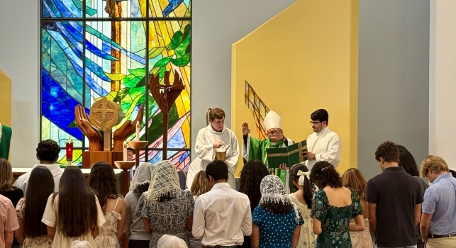DAVIS — A spirit of joy and unity filled the city of Davis on Sunday, October 12, as more than 250 students, parishioners, and community members gathered for the Jubilee Mass for Young Adults and the dedication of the newly renovated Newman Catholic Center grounds.