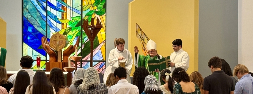 During the Mass, Bishop Rey commissioned student leaders from the Newman Centers at UC Davis, CSU Sacramento, and CSU Chico, sending them forth to serve as witnesses of Christ’s love on their campuses. The commissioning marked a visible sign of the Church’s ongoing mission to accompany young adults in faith, formation, and leadership.