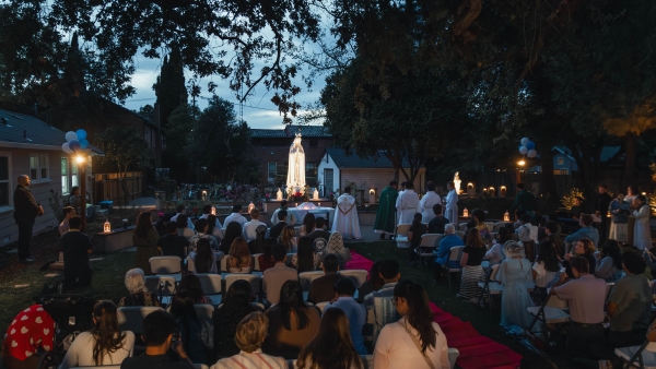 DAVIS — A spirit of joy and unity filled the city of Davis on Sunday, October 12, as more than 250 students, parishioners, and community members gathered for the Jubilee Mass for Young Adults and the dedication of the newly renovated Newman Catholic Center grounds.
